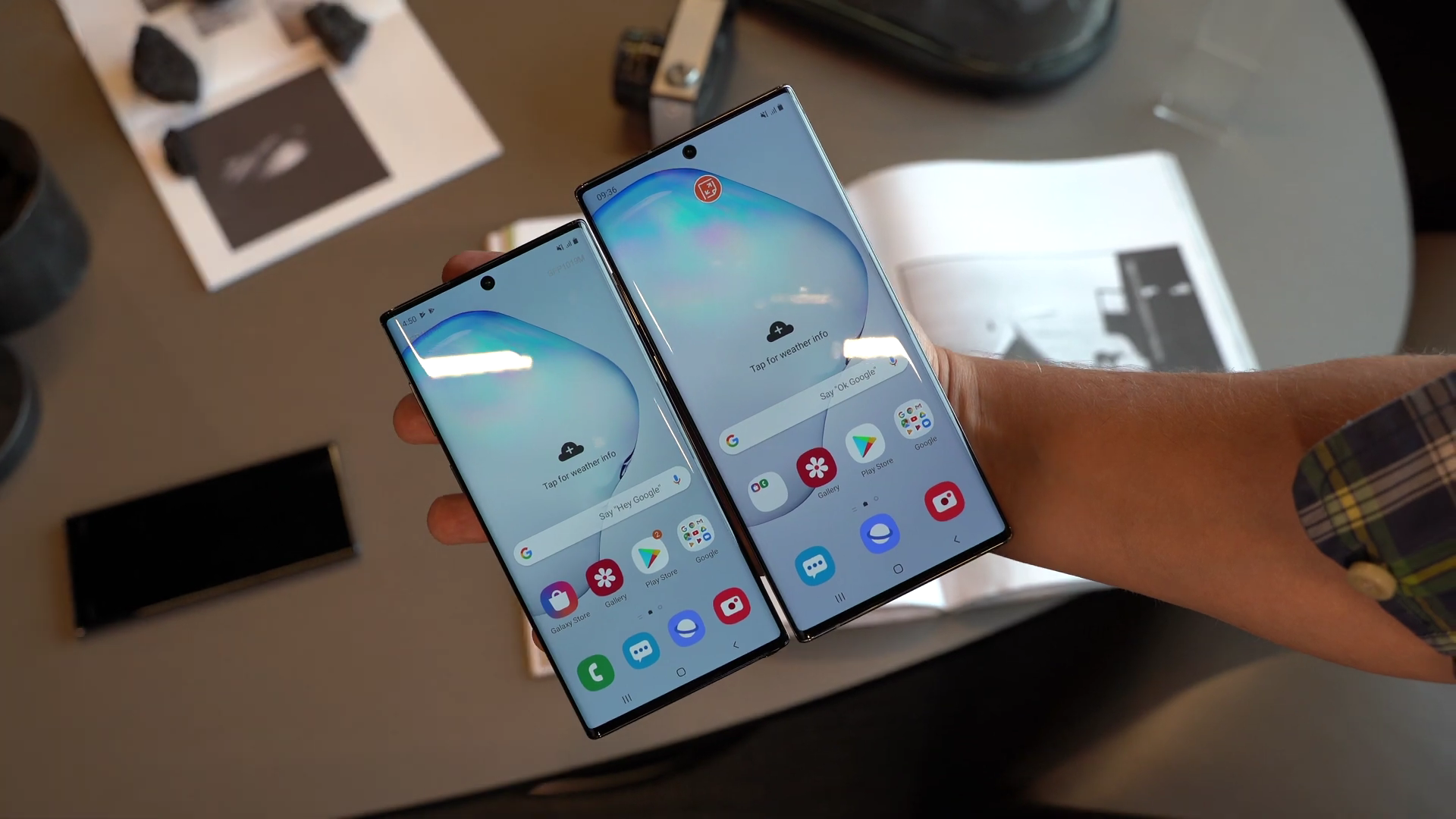 갤럭시노트10 스펙은 6.3인치 디스플레이를 채택했으며, 노트10 플러스는 6.8인치입니다. 전작인 갤럭시노트9이 6.4인치였던 것에 비교해 본다면 크기가 큰 단말기에 부담을 느끼는 사용자를 위해 6.3인치 모델을 내놓음과 동시에 더욱 큰 화면을 원하는 사용자를 위해 6.8인치 모델을 함께 내놓은 것으로 보입니다. 크기가 다른 만큼 배터리 용량도 다릅니다. 갤럭시노트10 스펙은 3500mAh이며 노트10 플러스는 4300mAh 입니다. 6.4인치에서 0.1인치 줄어든 것이 얼마나 차이가 있겠냐고 생각하실 수도 있겠지만은 디스플레이는 0.1인치 차이지만 단말기 크기를 비교하면 갤럭시노트10 스펙은 갤럭시노트9에 비해 가로는 4.6mm, 세로는 10.9mm나 작으며 두께 또한 0.9mm 줄어들어서 두 모델을 함께 놓고 비교해보면 확연하게 크기 차이를 느낄 수가 있습니다. 두 노트10의 크기만 다른 것이 아닙니다.